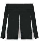100% polyester double knit * Ladies fit * Covered elastic waistband * Contrast color pressed box pleats with yoke
