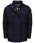 - Two-way, separating, heavy-duty Nomex®, taped brass zipper, fully covered with insulated storm flap, concealed snap closure