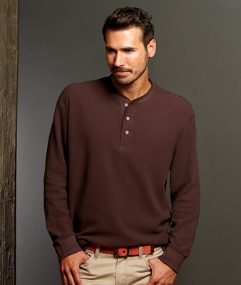 100% cotton • 7.2-oz. • breathable mini-waffle knit • notched V design at neck • tonal rack stitching • rib neck and cuffs • soft hand • contrast sweat patch • herringbone twill taping • tagless • Sizes: S-3XL