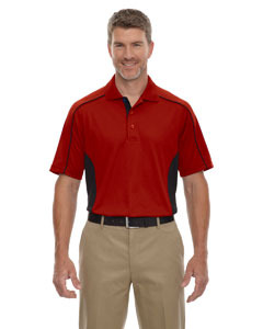 100% polyester snag protection plus tricot, 5 oz./yd2/170 gsm; Moisture wicking, antimicrobial and UV protection performance; matching flat knit collar; contrast colour neck tape; contrast inner placket; contrast side inserts; contrast piping at front and back shoulders and sleeves; contrast two-needle decorative stitching;
