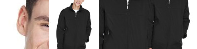 - Center front reverse coil zipper with chin guard