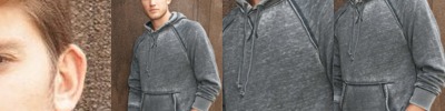 - Raw-edge hood opening, pocket seams, cuffs, waistband, zipper placket and side seams