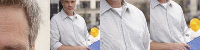 - Two-piece, lined, banded, button-down collar