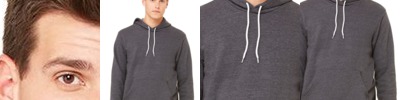 - Contrast melange fleece on hood, shoulders, and sleeves