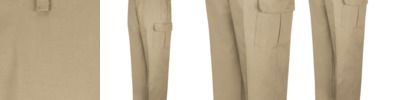 - Two slack-style front pockets, two back patch pockets with spade pocket flaps and snap closures, two patch leg pockets with inverted center pleat, one piece pocket flap with mitered corners, two snap closures