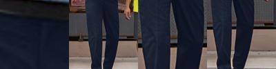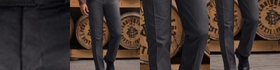- Two slack-style front pockets, two set-in hip pockets, left pocket has button closure