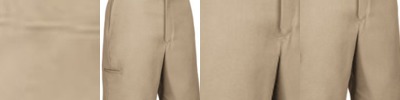 - Heavy-duty brass ratcheting zipper, snap closures on cargo and back pockets