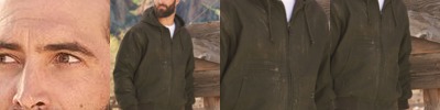 - Three-piece hood with scuba collar and inside drawcords