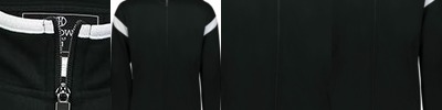 - Contrast-color lycra binding at collar and sleeve hems