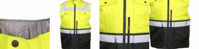 - Two-way, concealed Nomex® taped brass break-away zipper, concealed snap at top of zipper and at neck