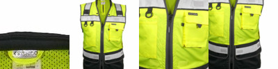 - Two front swing pockets, two patch chest pockets with flaps and concealed snap closure, two patch hip pockets, left sleeve pocket, rule pocket
