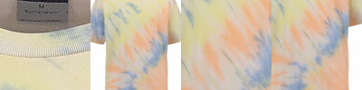 - Ribbed bottom band and sleeve cuff with raw edge seams
