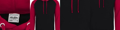 8.3 oz./yd², 80/20 ringspun cotton/polyester Double-needle stitch detailing Contrast double fabric hood with flat lace drawcord Contrast raglan sleeves Rib cuffs and hem Tear away label