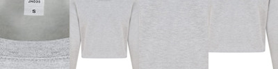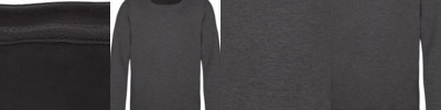 8.25 oz./yd²., 52/48 cotton/polyester Nantucket Fleece (Textured Fabric) Regular fit- true to size Canvas neck tape Double-needle topstitch on all seams Side-seamed Ribbed cuffs and waistband Tear away label