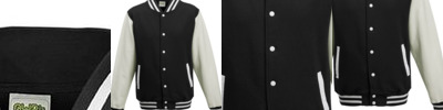 9.8 oz./yd², 70/30 ringspun cotton/polyester Knitted collar, cuffs and waistband with stripe detail Press-stud front closure Welt contrast pockets Tear away label