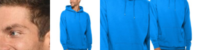 7.4 oz./yd², 30 singles Solid Colors: 80/20 ringspun cotton/polyester Heather Colors: 60/40 ringspun cotton/polyester 100% cotton face yarn Double-needle topstitch on all seams 3-panel hood with self-lining for extra comfort Dyed-to-match drawcord with metal grommets Half-moon patch on back neck Tear away label