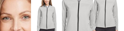 • Hidden front semi-auto-lock zipper with accent color collar stand