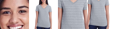 252RV Women's Invisible Stripe V-Neck T-Shirt