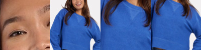 - Spandex blend ribbed-knit cuffs and bottom hem