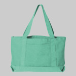 Liberty Bags 12.0 Ounce Seaside Cotton Pigment Dyed Resort Tote. Liberty Bags Seaside 12 ounce Gusset Tote. Premium 12 oz., pigment dyed cotton canvas with a gusseted bottom. Extra long 24 cotton handles. Exterior pocket size 7.5 W x 8 H. 19 x 12 x 4 1/2. Non branded label/tag.